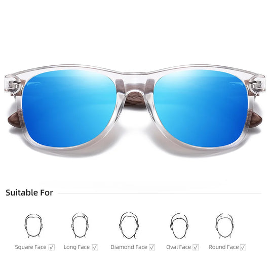 Lentes XUEDIAO polarizados marco PC transparente con varillas de madera unisex